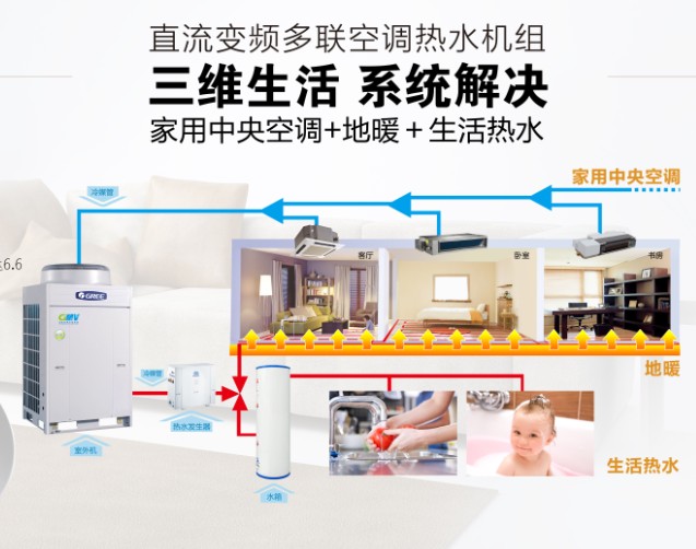 集直流變頻技術(shù)、空氣源熱泵技術(shù)和熱回收技術(shù)于一體,實(shí)現(xiàn)中央空調(diào)+地暖+熱水三大功能于一體,成為家庭別墅、休閑會(huì)所的新寵,榮獲由國家三大部及國家質(zhì)量檢驗(yàn)檢疫總局聯(lián)合頒發(fā)的年國家重點(diǎn)新產(chǎn)品證書