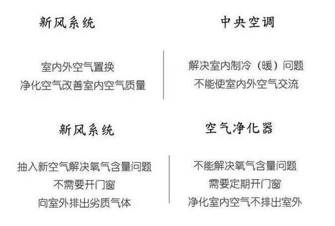 在我們的住宅市場環(huán)境中,中央空調(diào)是室內(nèi)進(jìn)行空氣可以循環(huán),主要研究解決中國室內(nèi)冷熱問題,為了提高節(jié)能的考慮,空調(diào)是在密閉空間內(nèi)對空氣的制冷技術(shù)或者制熱,一般企業(yè)不會從室外活動引入我國空氣。而新風(fēng)系統(tǒng)是從室外把新鮮空氣吸入室內(nèi),通過各種管道管理系統(tǒng),輸送到每個不同房間,同時把室內(nèi)的污濁空氣能夠通過回風(fēng)管道排出室外,這樣在不開窗戶的前提下,實現(xiàn)城市空氣的良好發(fā)展置換。